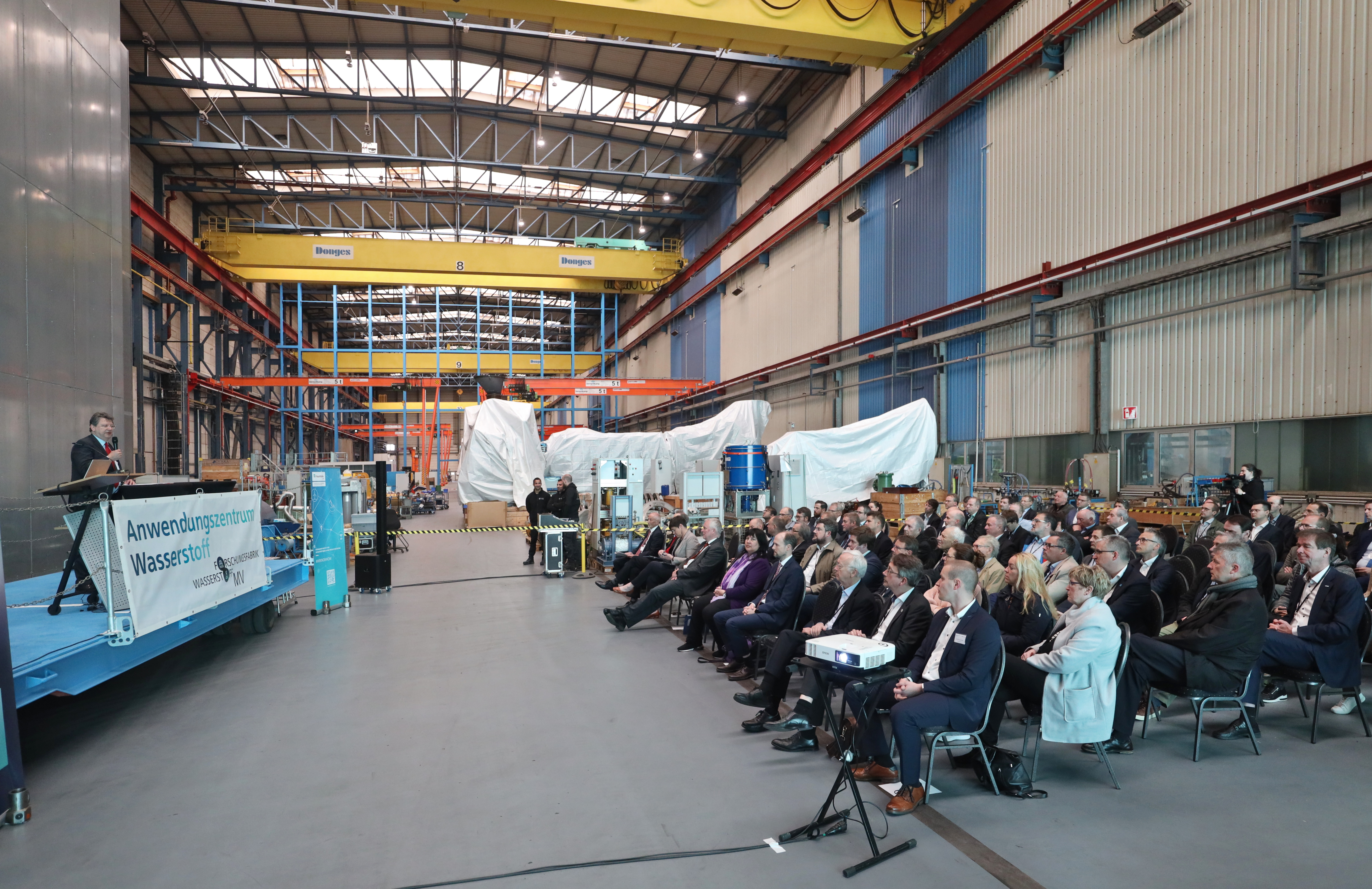 Wie können klimaschädliche Emissionen im Schiffsverkehr reduziert und Schiffe als Transportmittel noch nachhaltiger gemacht werden? Dieser Frage wollen die Forschenden des Anwendungszentrums Wasserstoff nachgehen. Mit einer feierlichen Eröffnung wurde das Anwendungszentrum Wasserstoff heute offiziell eingeweiht. Wirtschaftsminister Meyer überreichte bei dieser Gelegenheit einen Förderbescheid in Höhe von 9,9 Mio. Euro. Diese sollen dem Ausbau der Forschungsinfrastruktur des Anwendungszentrums dienen.